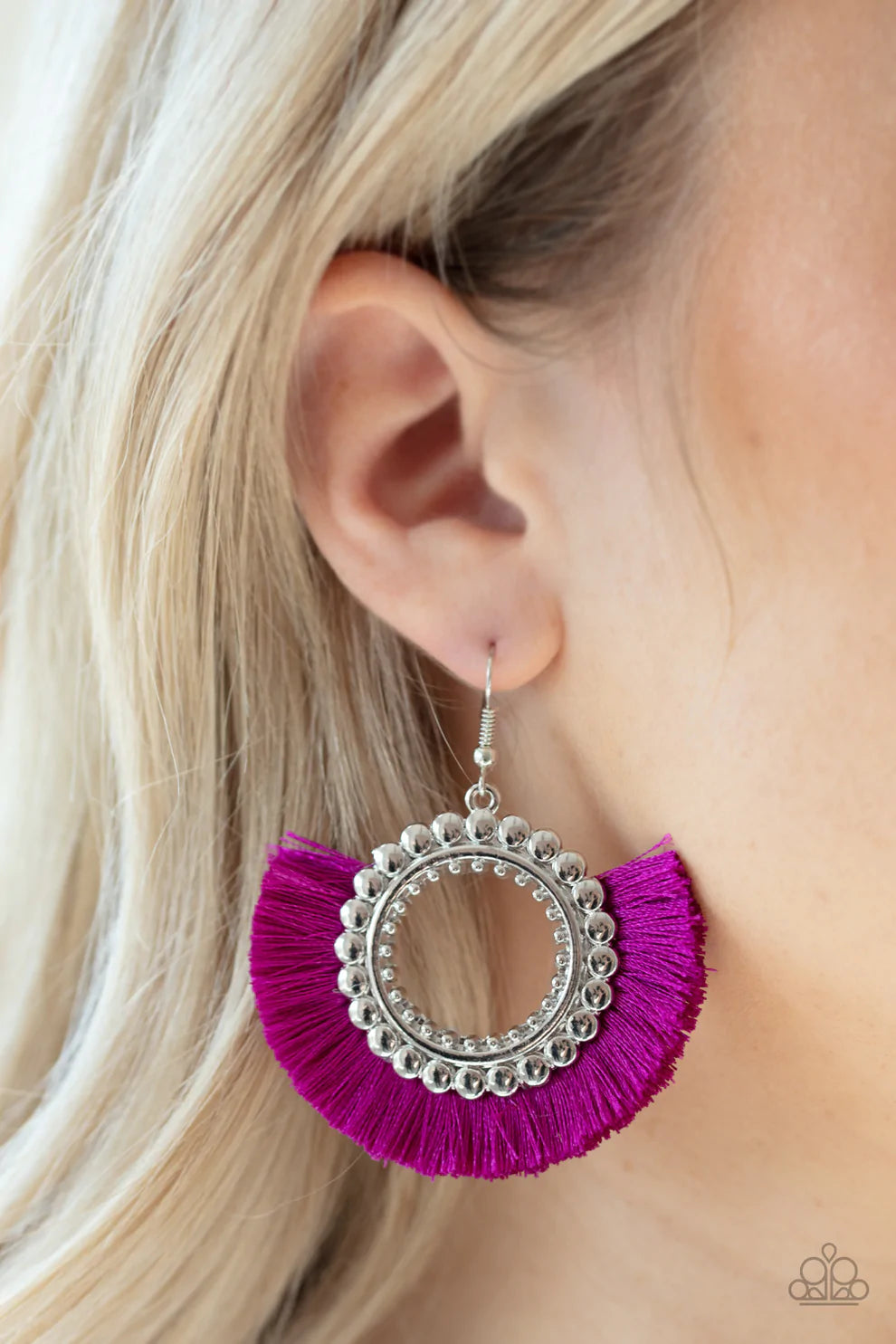 Pink wicker-like cording wraps around a thick silver hoop, creating a flirty pop of color. Earring attaches to a standard post fitting. Hoop measures approximately 1 1/2" in diameter.